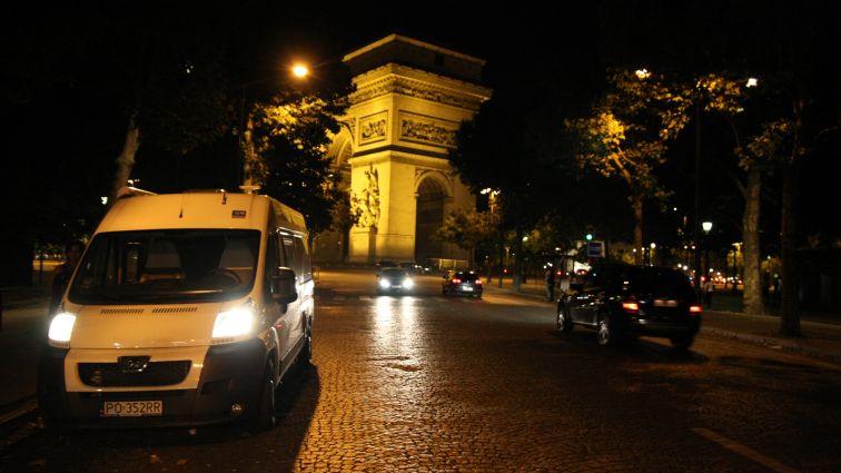 Paryż. Odpoczynek po objechaniu Łuku Triumfalnego. Horror nawet po północy.