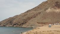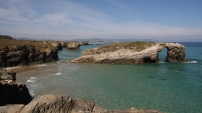 N 43° 34' 37,8" W 06° 00' 14,1" Santa Maria del Mar - parking grtis, plaża w wysokich skałach, prysznice, WC i bar